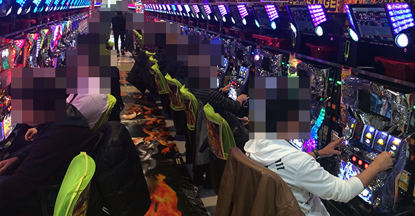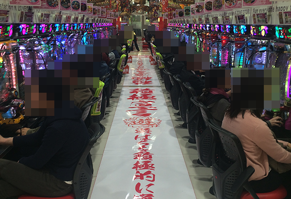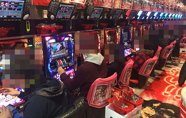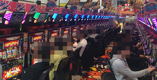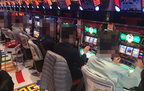 午後の店内では、とくにパチスロが大きく盛り上がっていた。