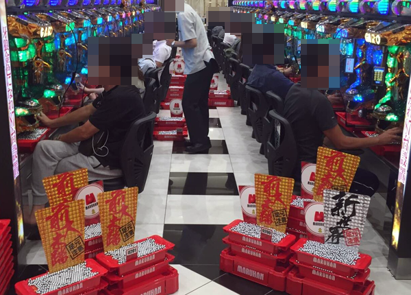 パチスロ・パチンコのどちらも注目度が高く、様々な機種が多くのプレイヤーでにぎわっていた「マルハン新世界店」。