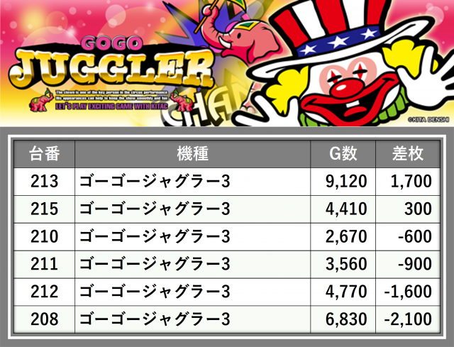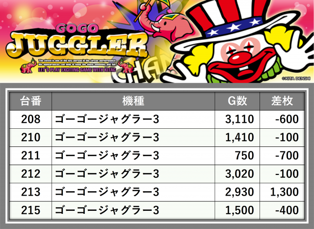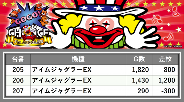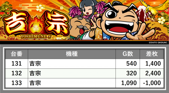 厳選された取材対象機種をはじめ、その他スロット全体から好記録が飛び出した!プレイヤーが楽しんだ1日を下記データにて振り返ってみて欲しい。