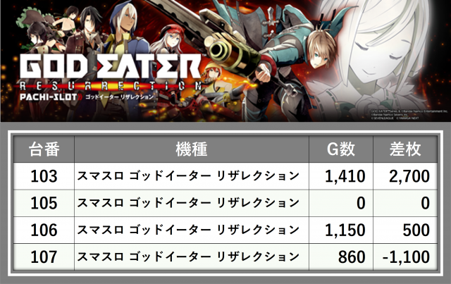 厳選された取材対象機種をはじめ、その他スロット全体から好記録が飛び出した!プレイヤーが楽しんだ1日を下記データにて振り返ってみて欲しい。