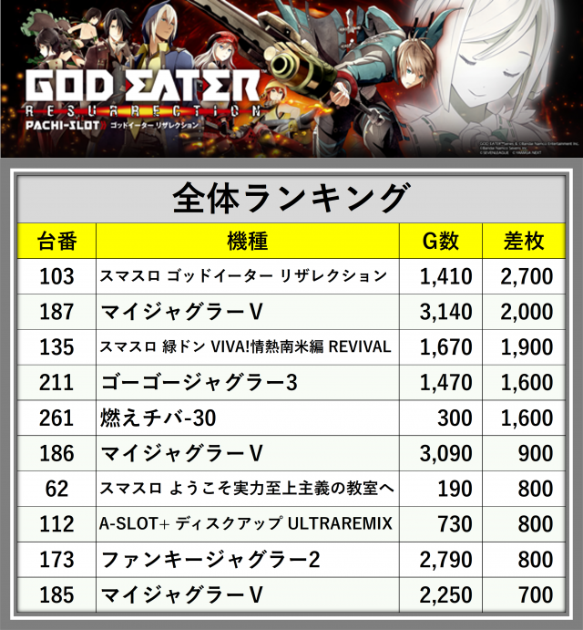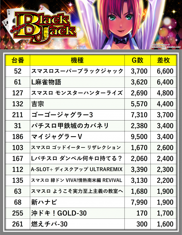 ※差枚数順に掲載しています