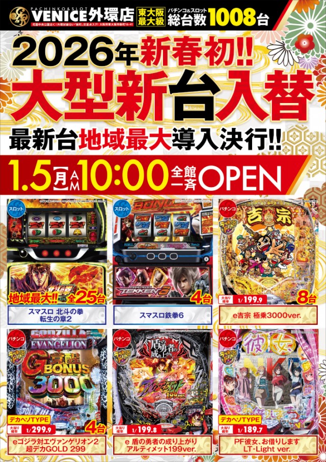 皆様必見!大型新台入替と共に新春初!実績の7日到来!