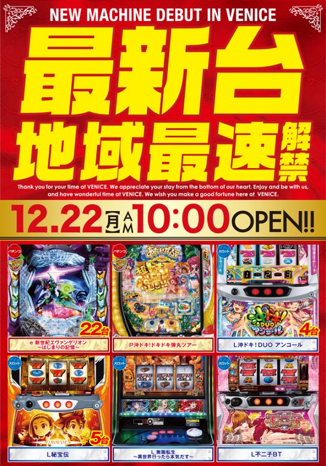 2015年4月29日!東大阪の地に、新たにベニスグループがグループ最大級の大型店を出店!ベニスグループ最重要旗艦店誕生!