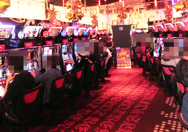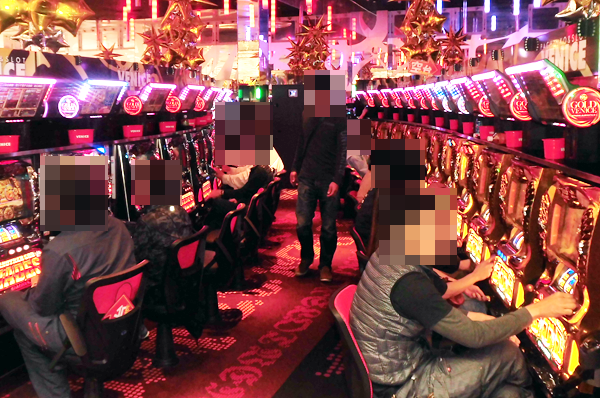 ホール内の様子をみてみると、パチンコ・パチスロコーナーともにたくさんのプレイヤーが集まり、大きなにぎわいをみせていた。