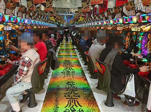 16時をすぎた頃の4円パチンコでは、朝と同様に「CR牙狼 魔戒ノ花」が高稼働かつ盛況。