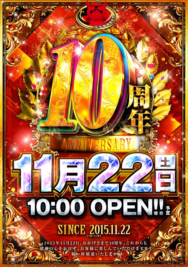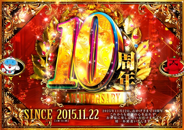 楽園なんば店1階・B1階は本日11月22日で✨10周年✨