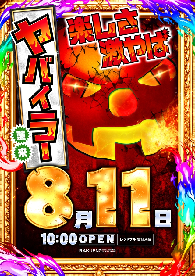 明日8月11日全館10時開店!ヤバヤバヤバイラーー-♪