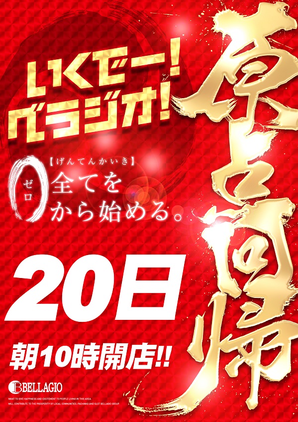 SINCE 7.16本日4.16朝10時開店!!ベラジオへ!