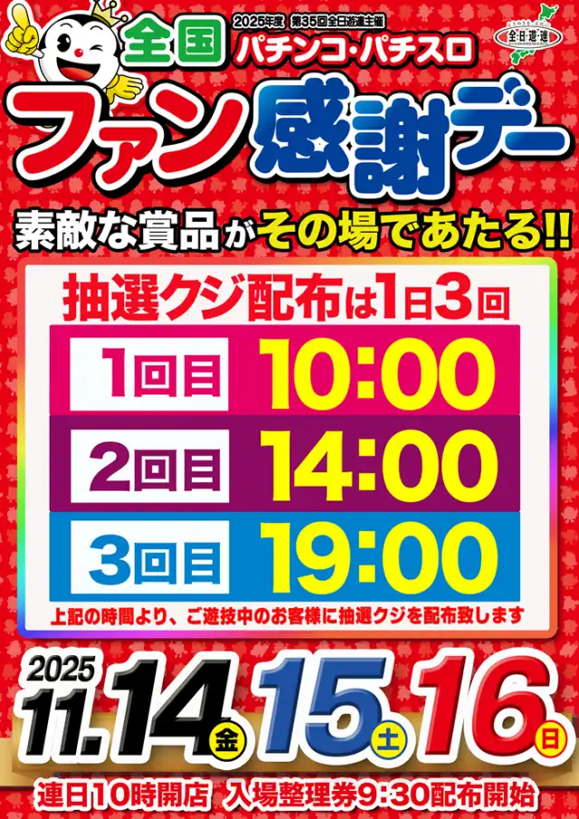 ★ファン感謝デー★ 11月14日~16日:連日10時開店!