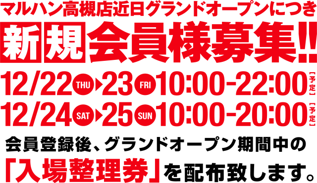 【マルハン高槻店】 明日より会員募集、開始になります。