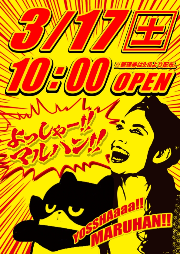 2月17日(土)よっしゃー!マルハン! 10時オープン!