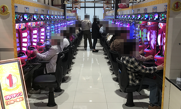 4円パチンコでは、「ぱちんこCR真・北斗無双」と「CRぱちんこ GANTZ」が盛況。朝イチから同じ台を打っているプレイヤーもみられ、充実した時間を過ごせていることがうかがえた。
