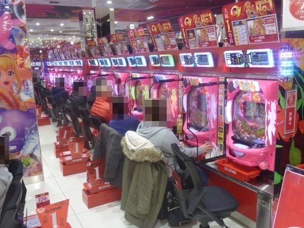 開店直後は、20円パチスロの人気が高く、ほとんどの機種が満台であった。
