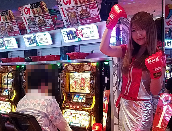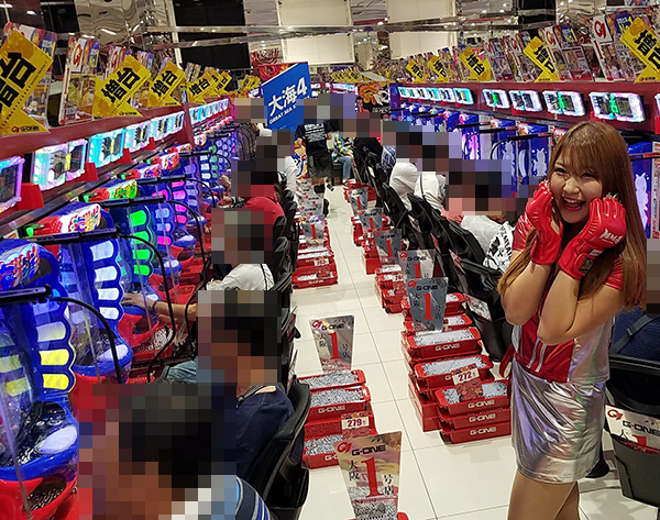 パチスロコーナーでは、多くのプレイヤーが活躍。うれしそうにレバーを叩く姿も印象に残っています。