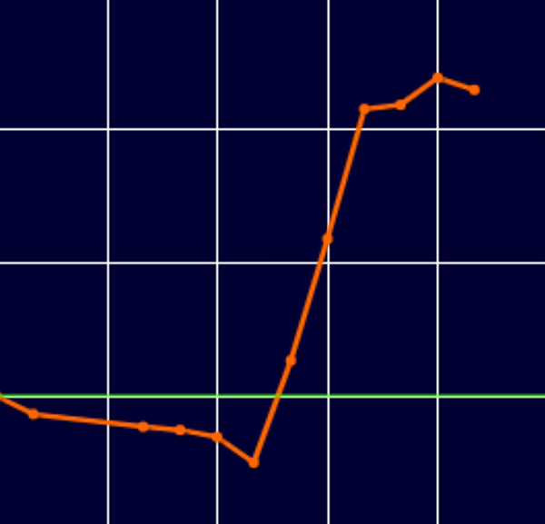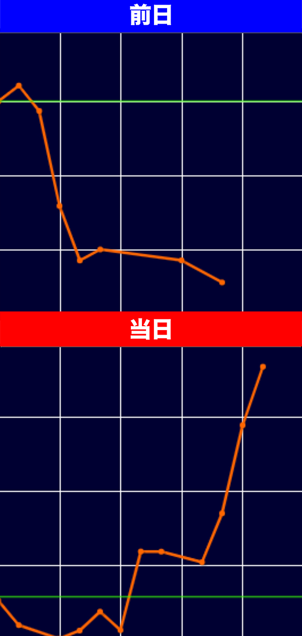 前日とは真逆の展開となっており、「どんでん返し」という言葉がピッタリと当てはまるグラフでした。