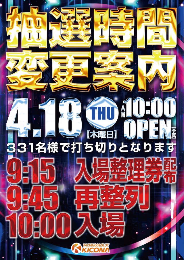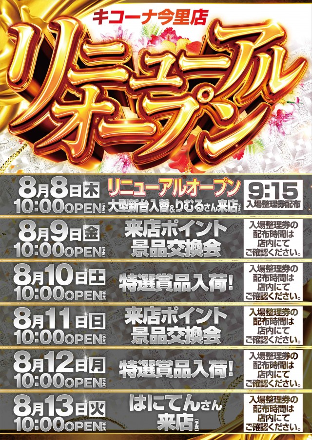 4/25[金] キコーナ今里店 【リニューアルオープン】
