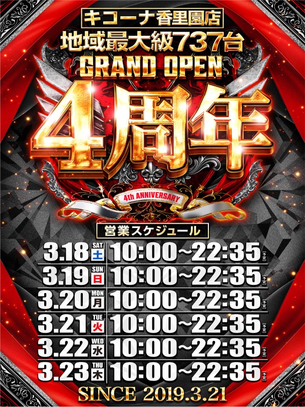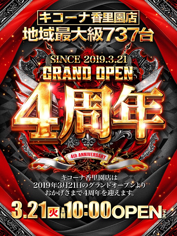 3月21日(火) 生誕4周年!AM10:00 OPEN!