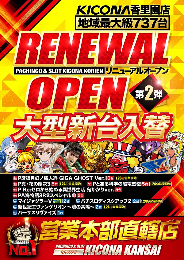 リニューアル第2弾始動!×大型新台入替!