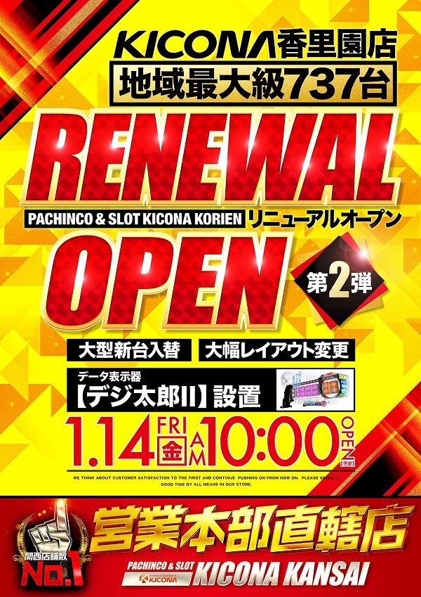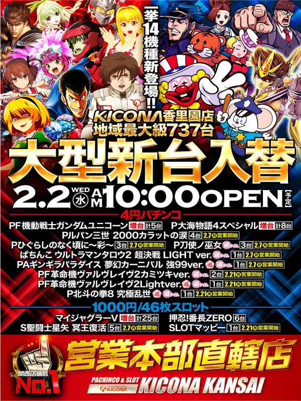 キコーナ香里園店!大型新台入替完了‼