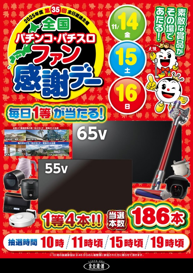 ★ファン感謝デー★毎日1等が当たるッ!抽選はなんと日に4回!
