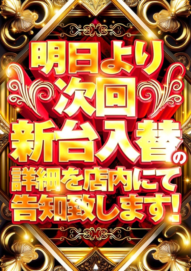 明日より次回新台入替の詳細を店内にて告知致します!(予定)