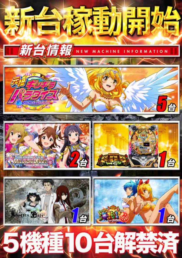 6月8日(水)10時オープン!最新台稼働開始完了!