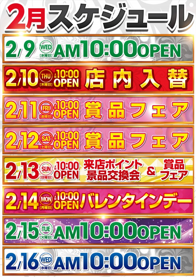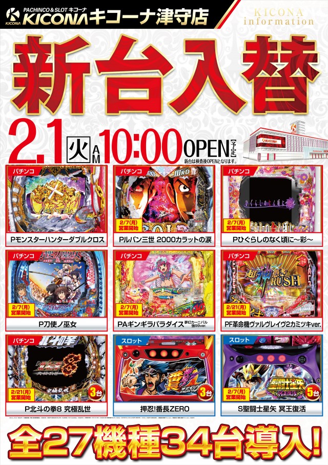 2月21日【月】最新台稼働開始!! 10時OPEN!!