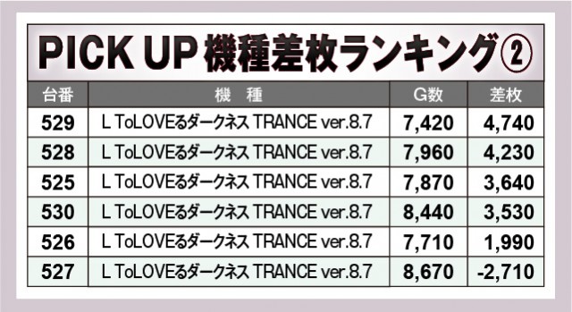 万枚OVERを達成した『L ToLOVEるダークネス』が優秀機種として名を連ね、さらに姉妹機『L ToLOVEるダークネス TRANCE ver.8.7』も半数以上でプラス差枚数を築いている。他にも遊技するファンを笑顔にした機種は多いが、その中でも存在感を放っていたのは『新ハナビ』ではないだろうか。全台プラス差枚数という記録が示しているように、そしてさらに閉店までじっくりと打ち込まれた形跡も相まって、大きな可能性が解き放たれていたのは確かだ。