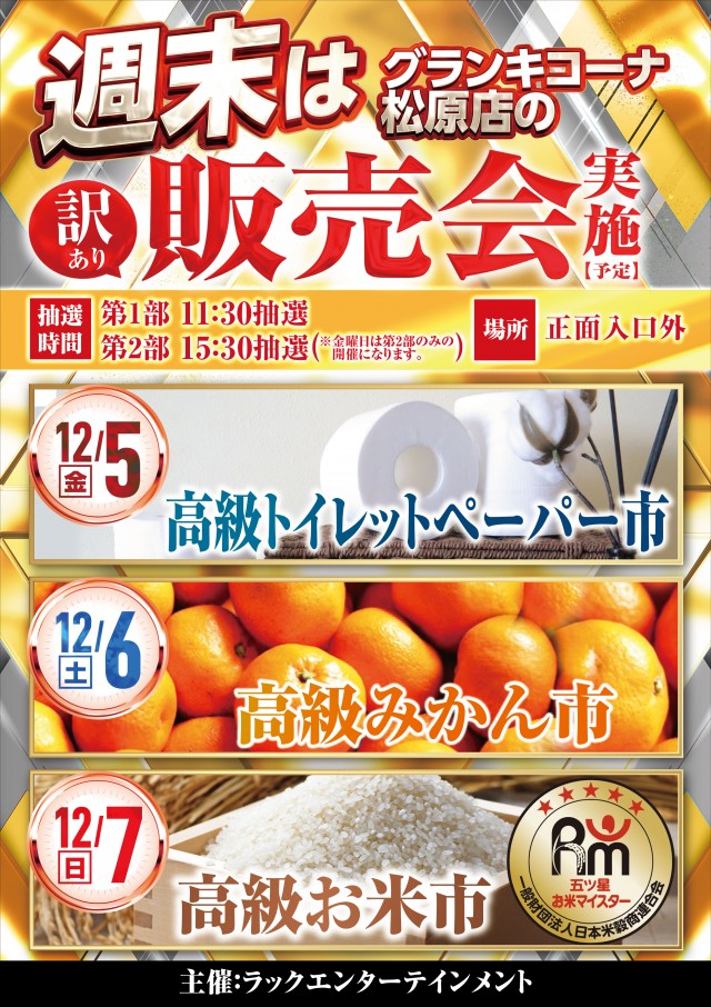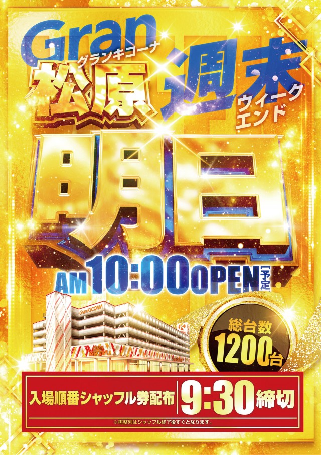 パチンコ/スロット:指定時間までにお集りの方を対象に入場順番シャッフルを実施!! |