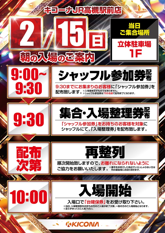 1月26日(月)8時50分~9時20分→シャッフル参加券・9時20分→入場整理券配布予定 |