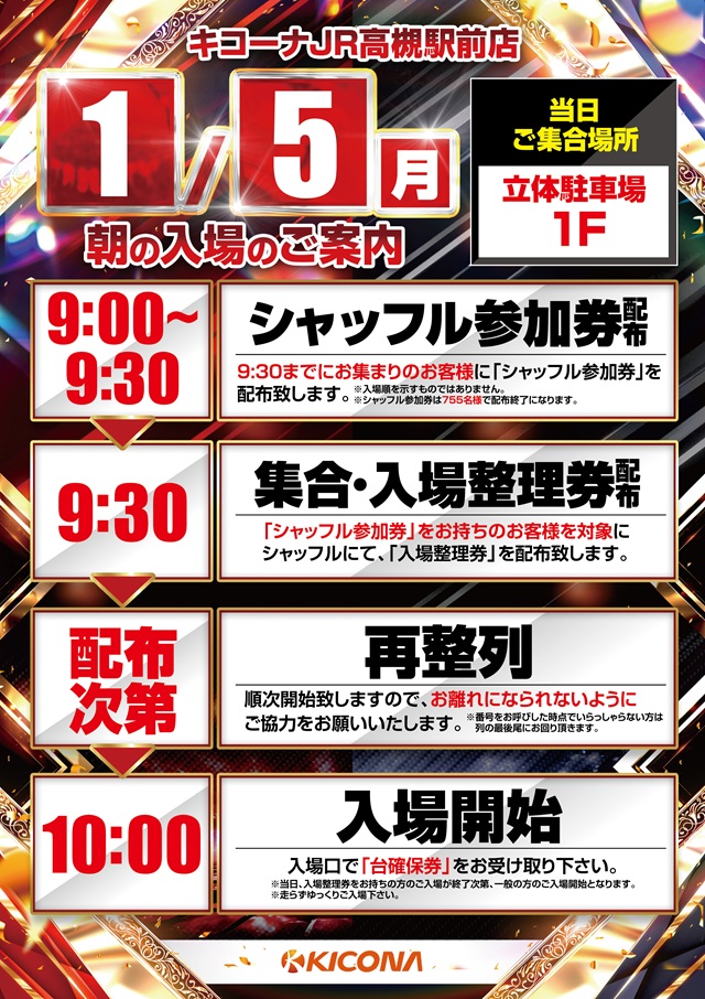 1月26日(月)8時50分~9時20分→シャッフル参加券・9時20分→入場整理券配布予定 |