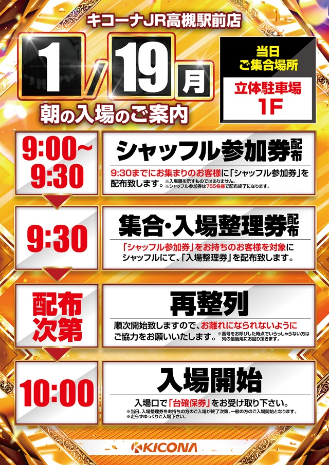 1月26日(月)8時50分~9時20分→シャッフル参加券・9時20分→入場整理券配布予定 |