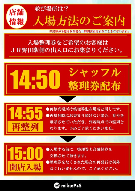※ 整理券は9:50より店舗正面にて配布