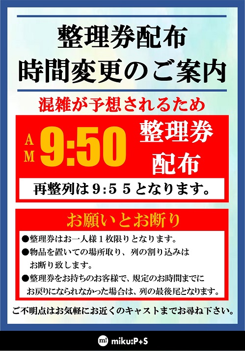 ※ 整理券は9:50より店舗正面にて配布