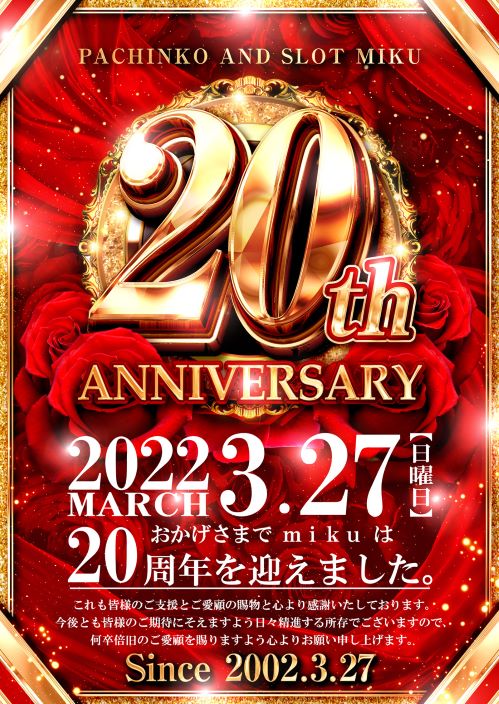 【本日】3/27(日) 20周年!! 全館‼10時オープン‼