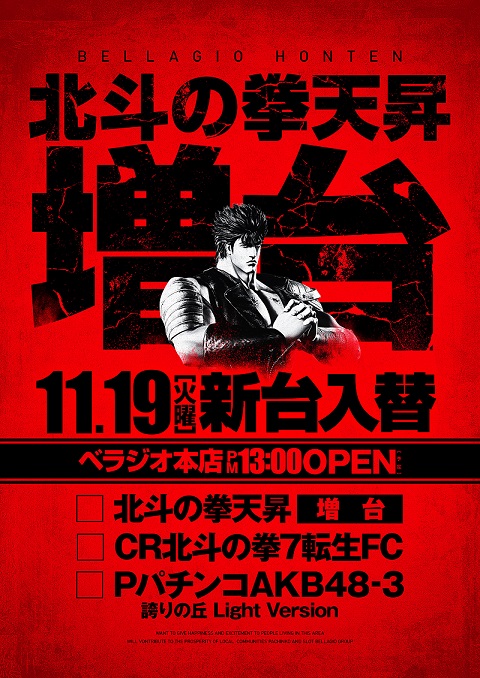 明日11月19日新台入替初日!!13時オープン!!(予定)
