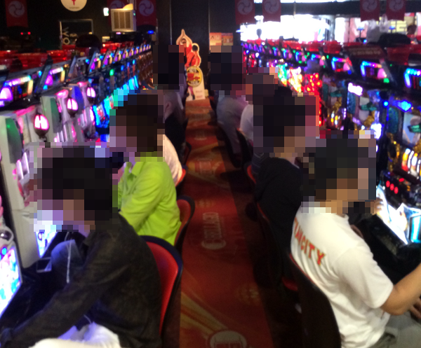 午後になると20円パチスロの「SLOT魔法少女まどか☆マギカ」、「バジリスク〜甲賀忍法帖〜絆」、「パチスロ北斗の拳 転生の章」といった人気機種が大きな盛り上がりをみせる。