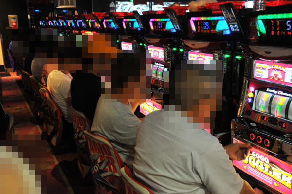 とくに20円パチスロ(47枚/1000円)のジャグラーシリーズが賑わっており、シリーズ機を問わず笑顔のプレイヤーも多数。