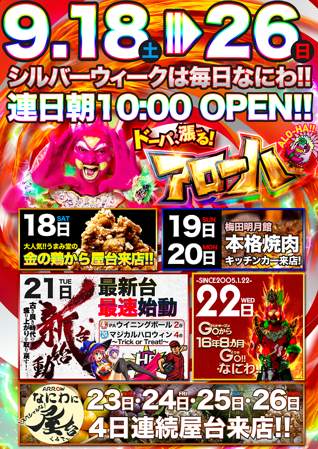 9月20日朝10時開店!シルバーウィークは毎日なにわ!