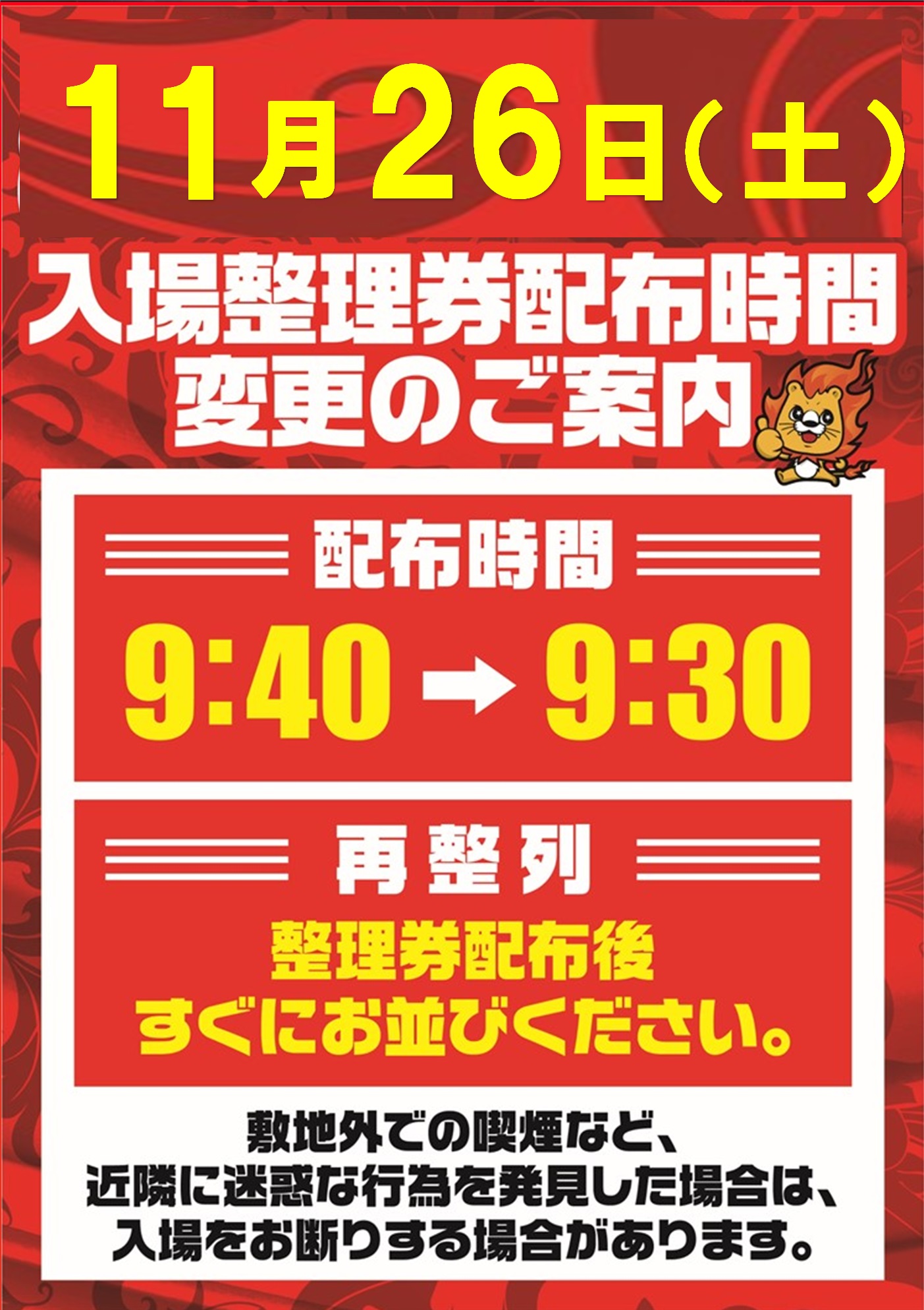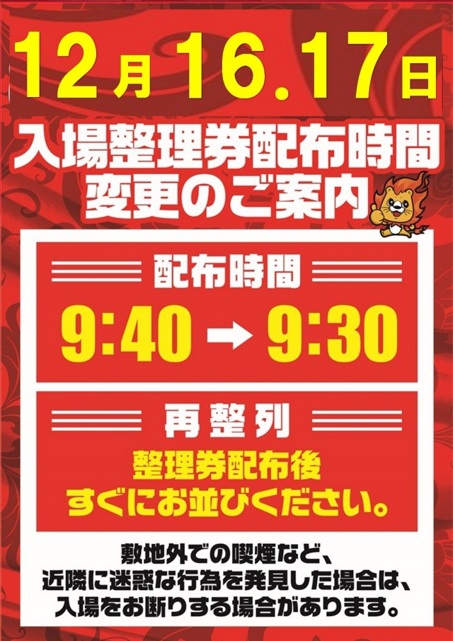 ■入場整理券配布時間変更■
