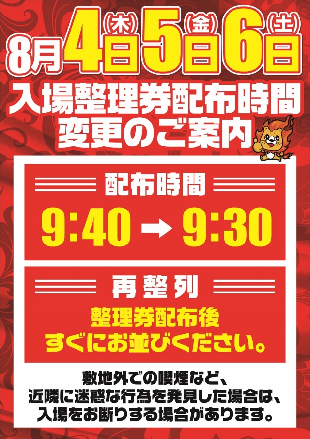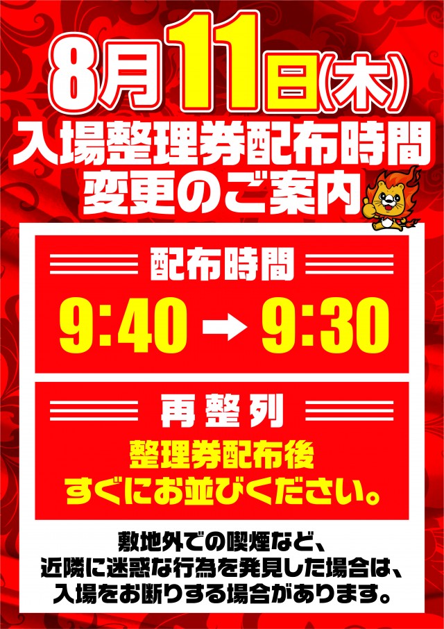 ★★★入場整理券配布時間変更★★★