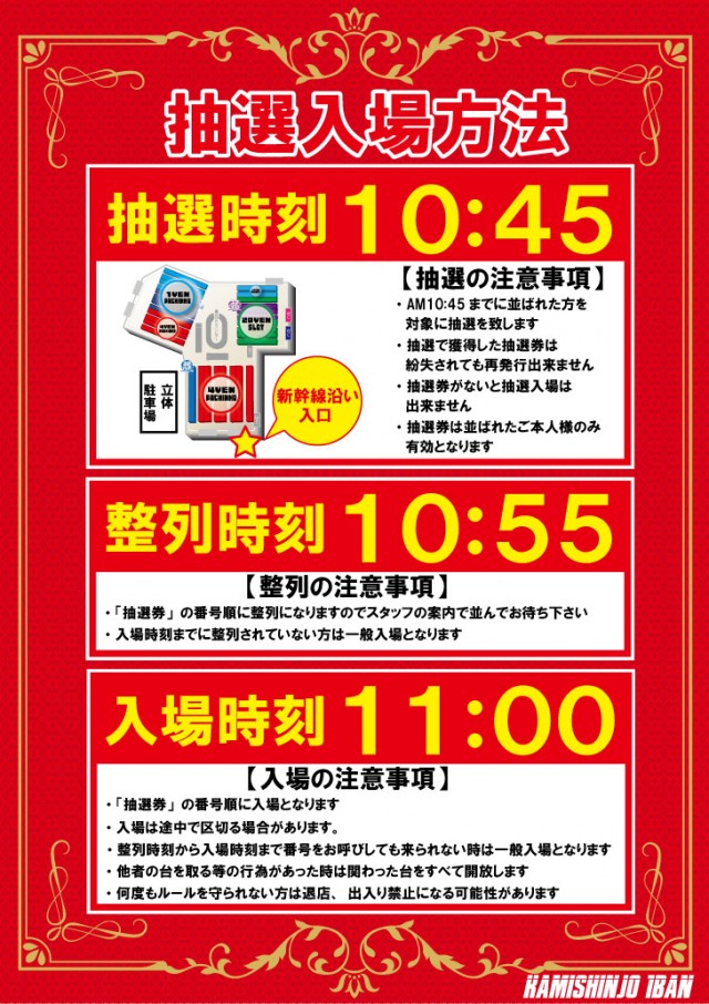 本日12月7日(日)大型新台入替作業のためPM9:00閉店となります。あらかじめご了承ください。明日12月8日(月)