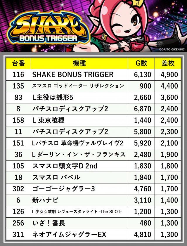 ※記事内の差枚表記はぱちタウン独自調査に基づくものです。ご了承ください。
