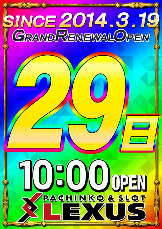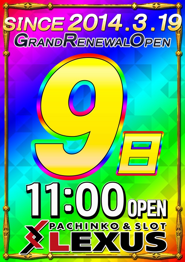 🌈9日レクサス🌈 新台入替 11時OPEN予定!!