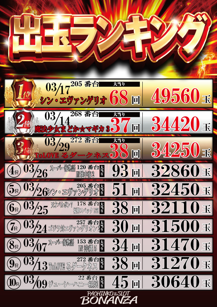 1位 3月25日(水) 2位 4月7日(火) 3位 4月6日(月)