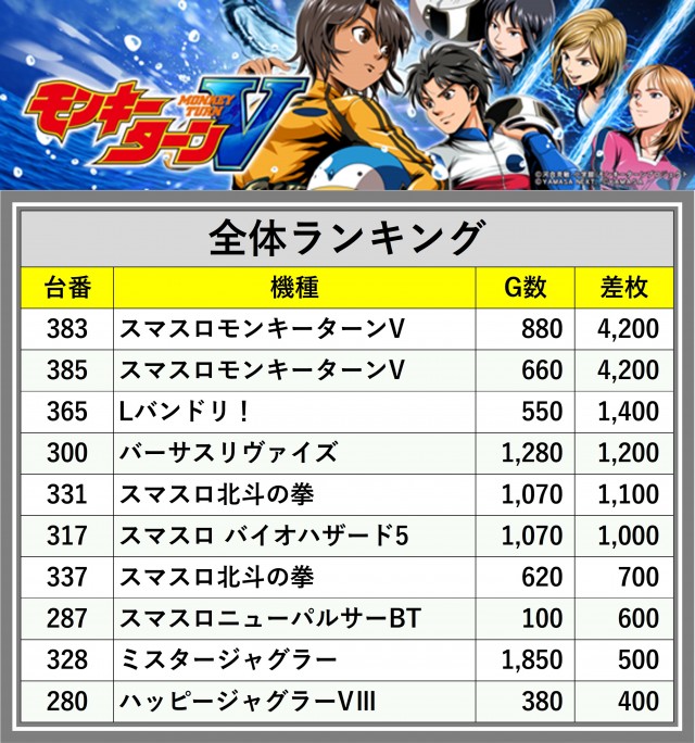 ※差枚数順に掲載しています