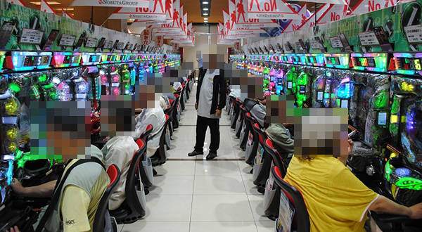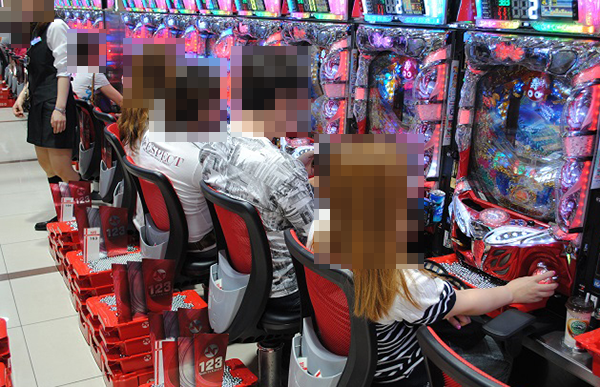 「CR牙狼 魔戒ノ花」と「ぱちんこCR真・北斗無双」もにぎやかな状況となっており、笑顔をみせるプレイヤーが多数。