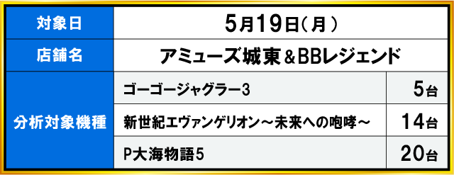 この日は『ゴーゴージャグラー3』において、+5,000枚overの良好な差枚を記録した台が確認された。