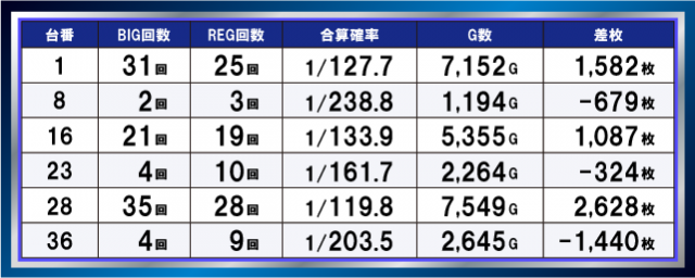 差玉+2万発超えの台を含む好データが複数確認され、スマパチ機種の中でも注目を集める内容だった。