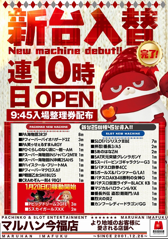1/14(火)朝10:00開店!ご来店お待ちしております!